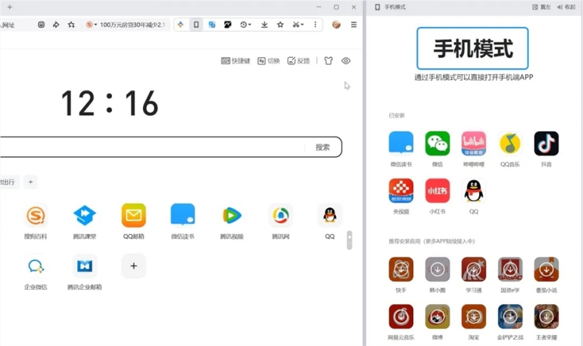 2020年,QQ浏览器推出手机模式,用户在PC端可通过该模式使用常见的手机APP [32]。11月18日,新华网客户端联合QQ浏览器共同发起“暖读”联盟,正式上线暖读“栏目”,聚焦平凡人的不平凡事。 [25]并落地“深圳有答案”系列事件,通过一系列互动体验活动,邀请全国人民一起回望深圳四十年,感受深圳创新进取、开放包容的城市脉搏。 [26]