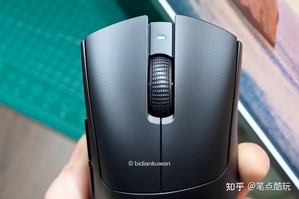滚轮上方的多色指示灯特写:既是2.4GHz信号连接指示和DPI档位灯,也可以在充电时作为电量状态灯。