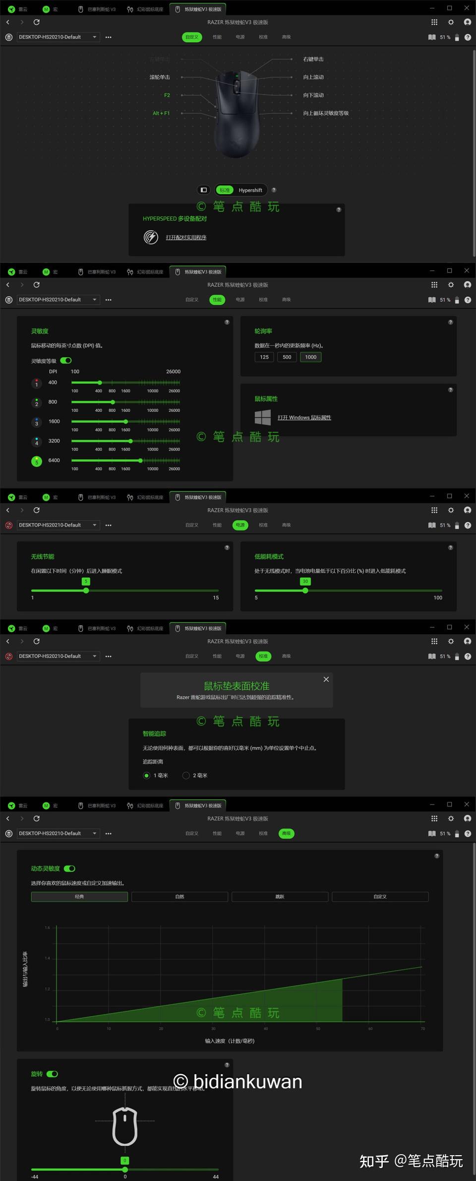 鼠标6键均可编程,启动雷云4即可。雷云4界面也可以做出各种自定义,比如DPI档位、轮询率、睡眠时间、低功耗模式、设置自动校准,适配多种鼠标运动平面等等。