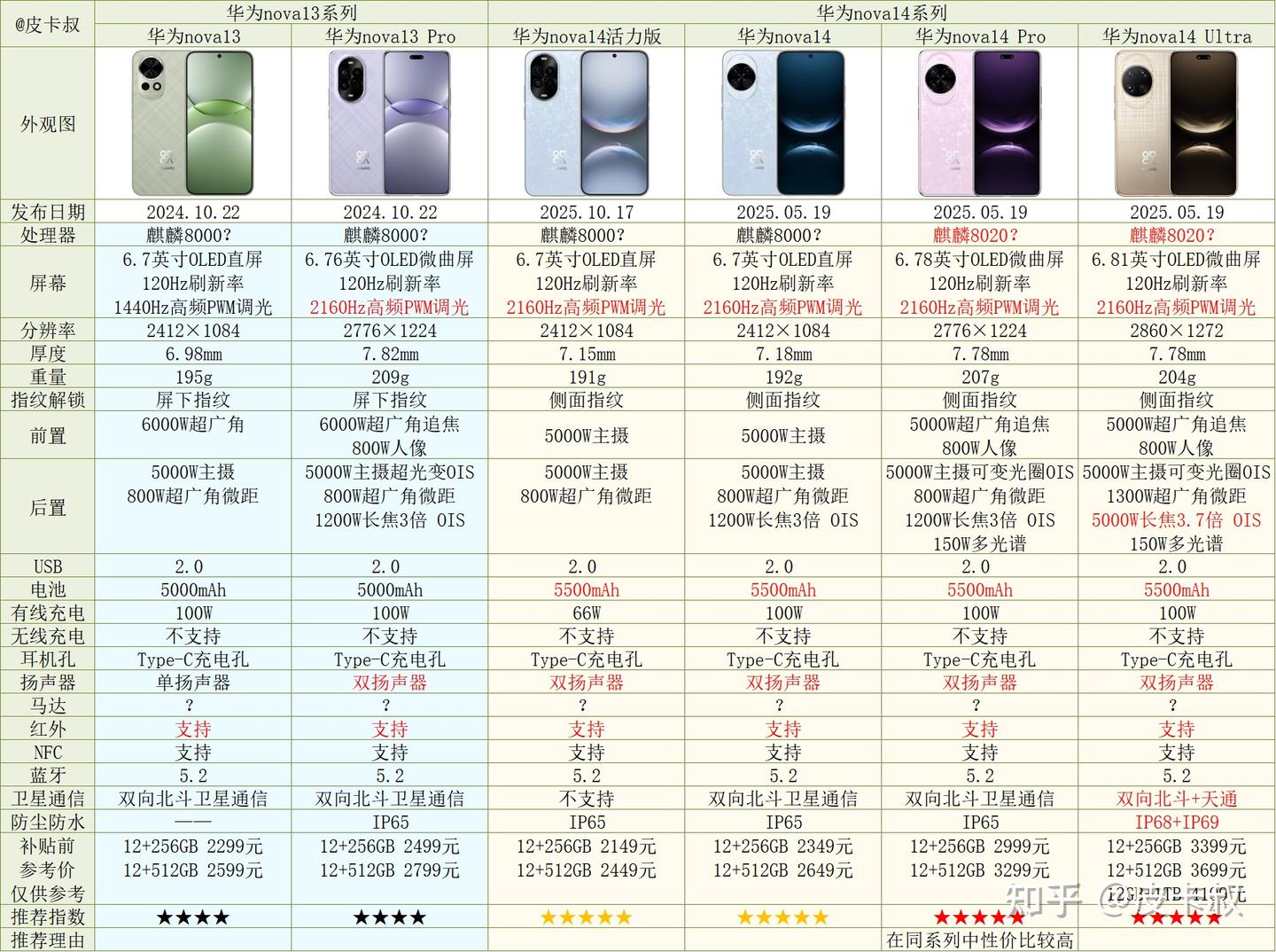 近期更新:已更新11月25日发布的华为Mate80系列。已更新10月17日发布的华为nova14活力版。已更新6月11日发布的华为Pura80系列。已更新5月19日发布的nova14系列。