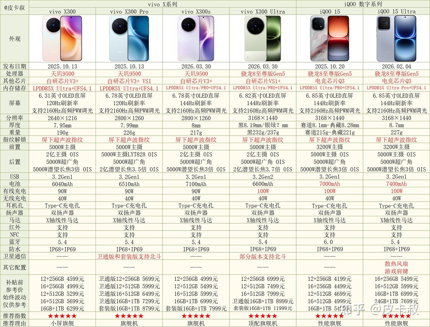 近期更新:已更新3月30日发布的vivo X300s和Ⅹ300Ultra。已更新3月26日发布的iQOO Z11系列。已更新2月4日发布的iQOO15 Ultra。已更新1月15日发布的iQOO Z11Turbo。