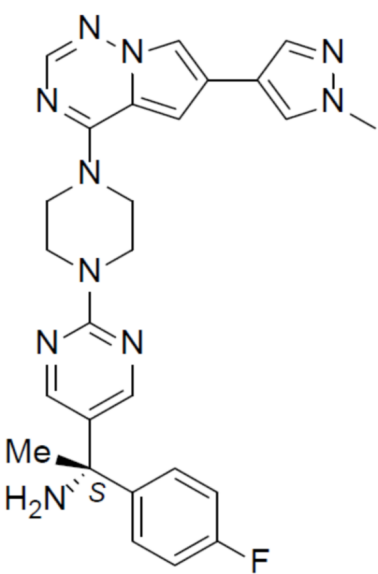 化学名称:(S)-1-(4-氟苯基)-1-(2-(4-(6-(1-甲基-1H-吡唑-4-基)吡咯[2,1-f][1,2,4]三嗪-4-基)哌嗪基)嘧啶-5-基)-1-乙胺