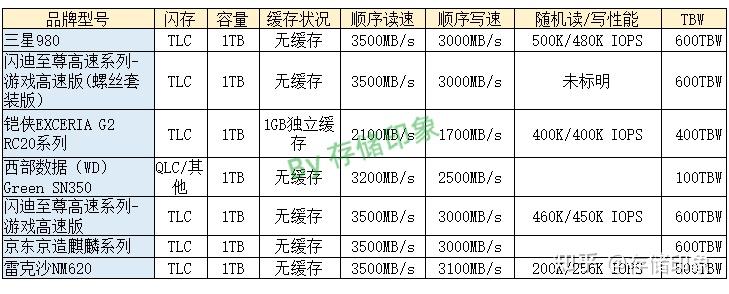 无缓存的 M.2 NVMe PCIe3.0×4 固态硬盘可以重点推荐闪迪至尊高速系列-游戏高速版、三星 980、雷克沙 NM620,这几款都是采用 TLC 闪存类型,耐写性方面不用担心。