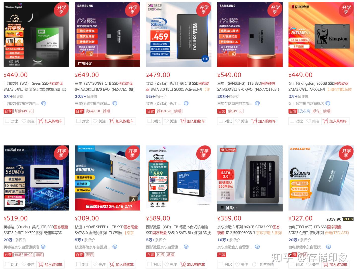 以主流的 1TB 容量 SATA SSD 为例,很多品牌的价格在 200 元~600 元之间,例如西部数据 Green SSD(SATA3.0 接口)价格为 449 元,国产长江存储旗下的致态 SC001 Active 价格优惠后为 459 元。这些价格仅供参考,平时销售价会有一定的浮动。