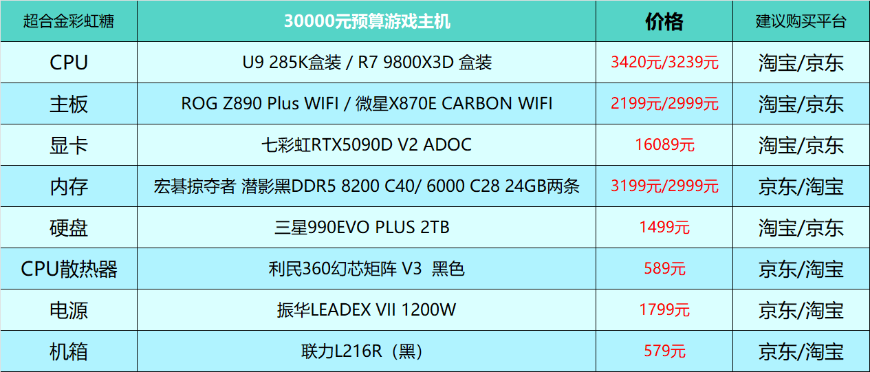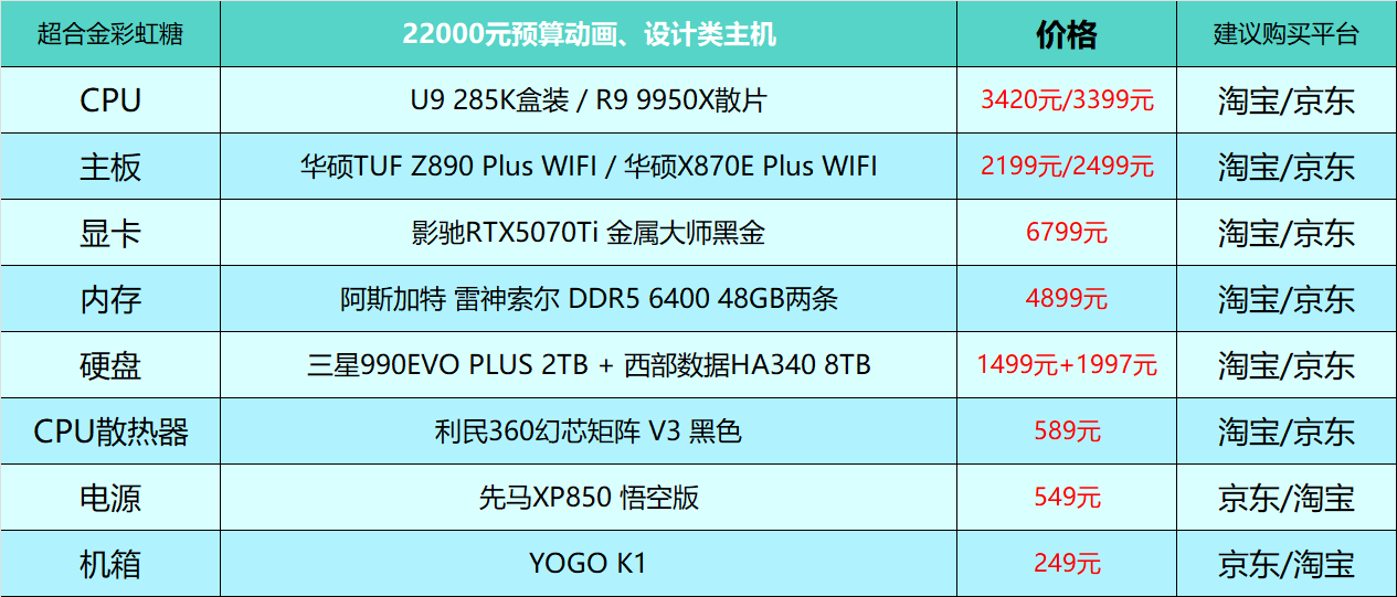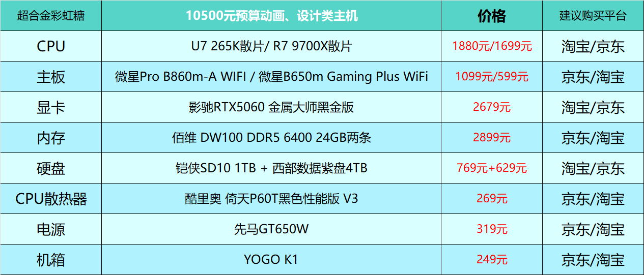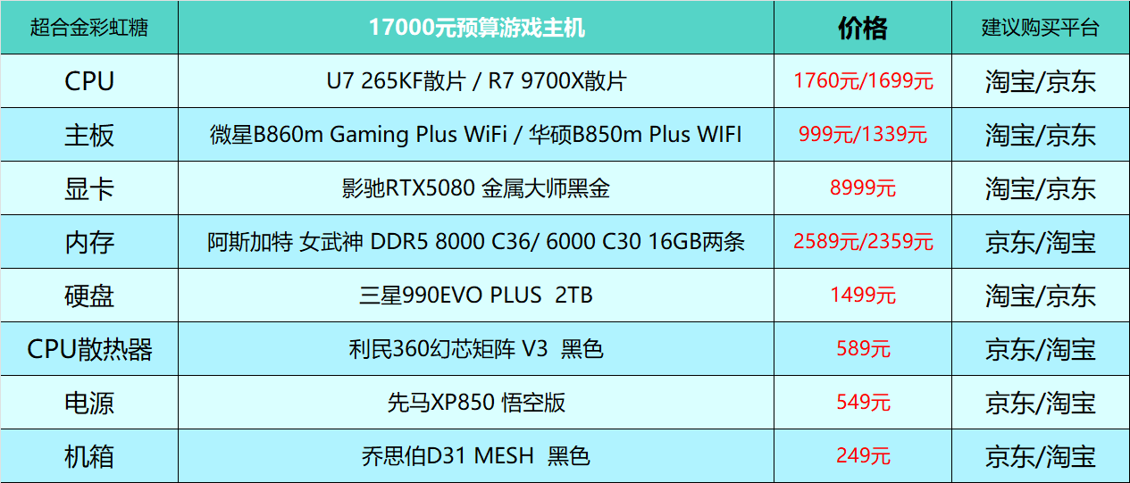 AMD方案也可以选择9950X3D,这个看你们个人喜好,我觉得9950X就行了