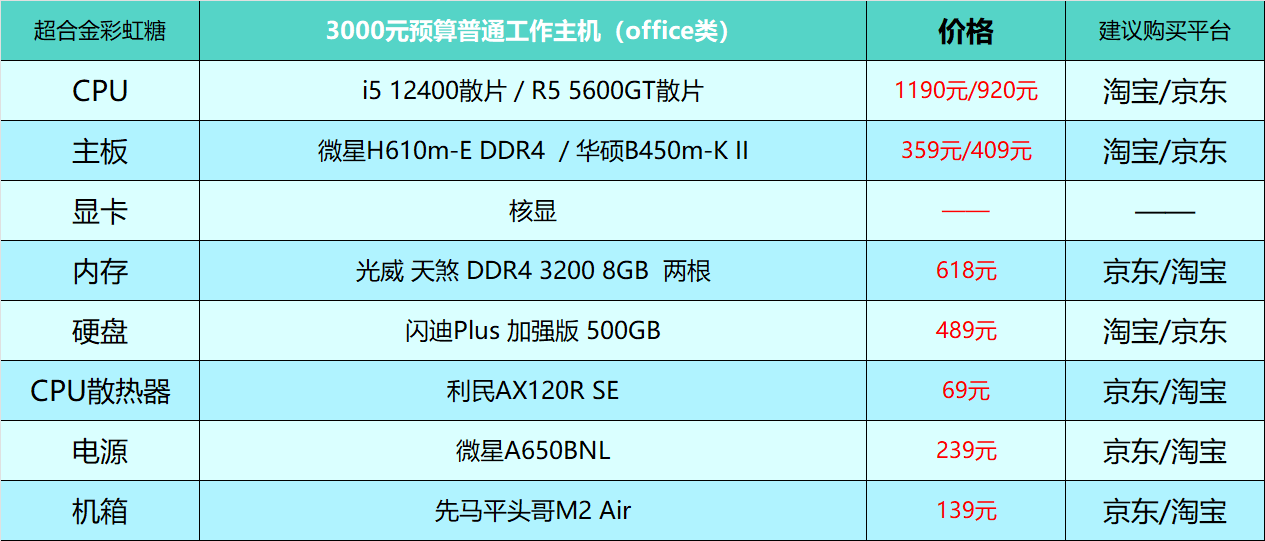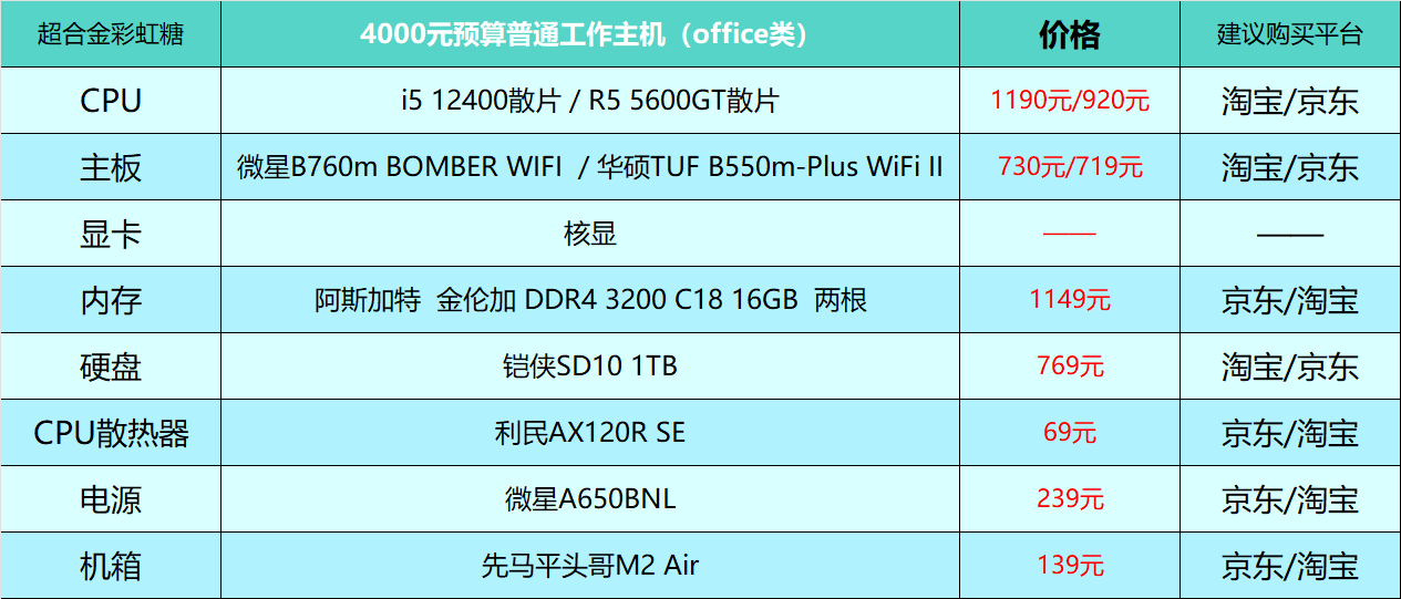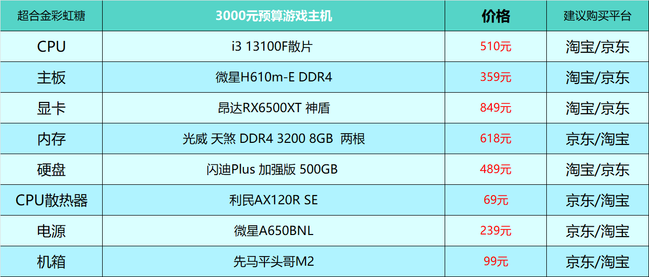 如果需要装机服务的话,我也有一个合作店铺可以帮助大家,淘宝搜索:“超合金彩虹糖的电脑铺子”,资源比较广,所以很多性价比硬件都有,所以大家可以拿着性价比配置单来我的店铺装机,也可以直接点下面这个直达链接来找我帮忙