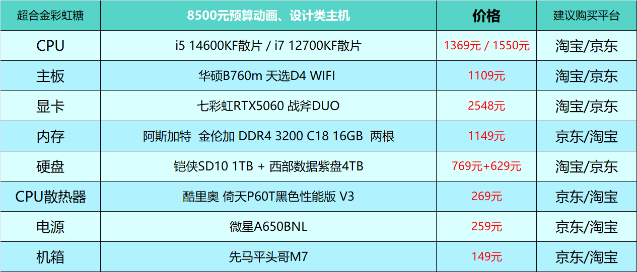 在升一级预算的情况下,我认为可以提升显卡性能以及改善硬盘搭配,到这一套,就基本上达到创意设计工作站的基本配套了