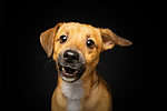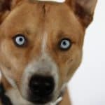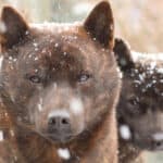 Dogs have brown eyes; wolves usually have amber-colored eyes.