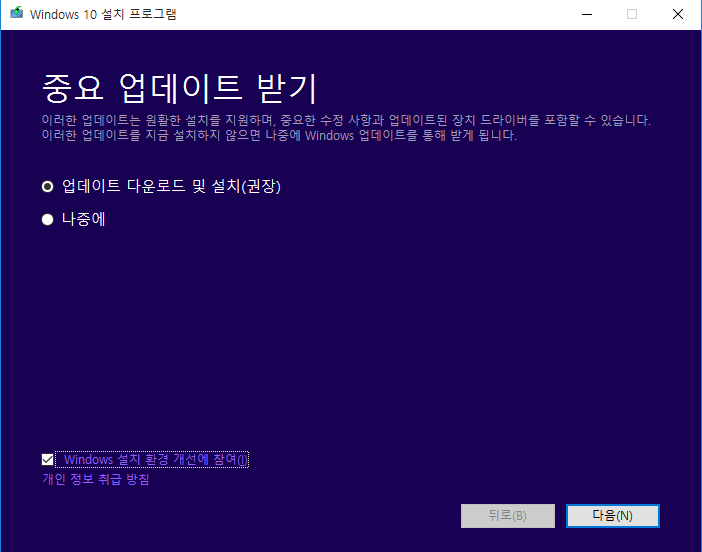 아래와 같이 인플레이스(In-Place Upgrade) 설치를 진행해 보시길 바랍니다.