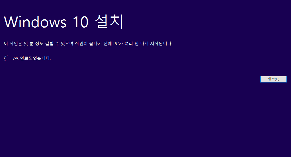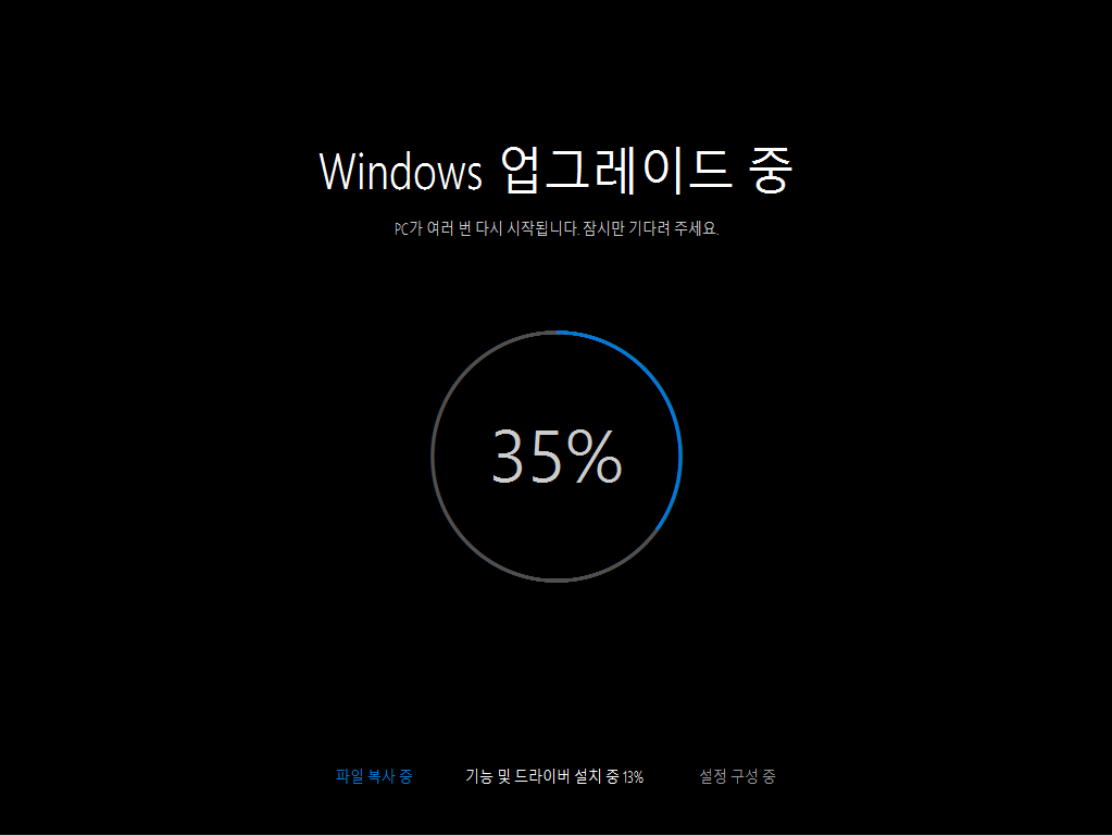 (이 과정에서 다소 시간이 소요될 수 있고, PC가 여러 번 재시작될 수 있습니다. 아래의 이미지를 참고합니다)