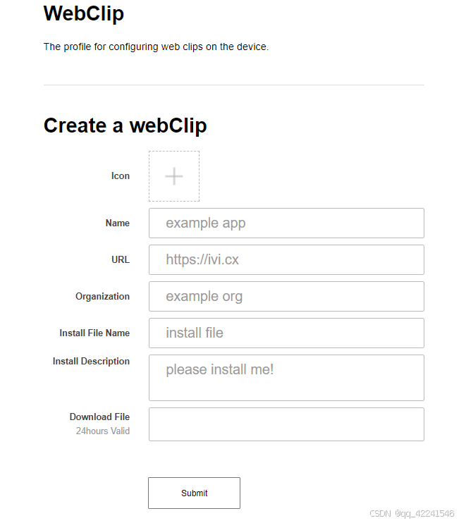 2.打开   https://ivi.cx/ 网址 按照要求填写信息提交可生成 .mobileconfig 安装文件